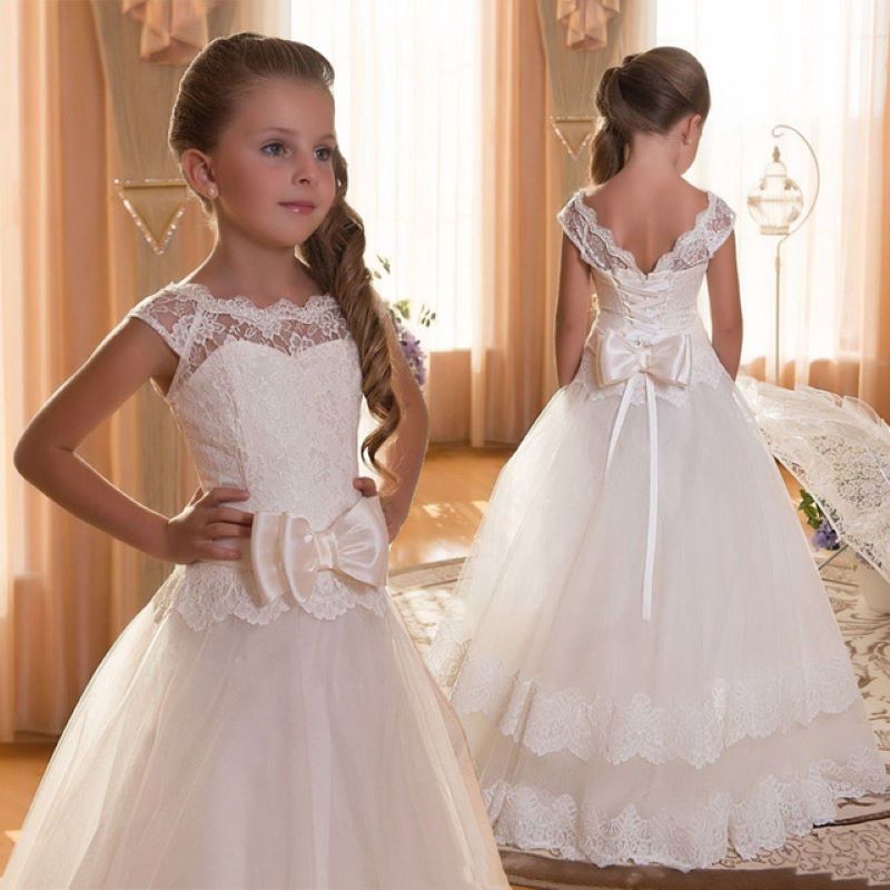 White Girdle Formal Party Dresses For Girls Princess Dress Teenage Children Prom Wedding Gown Lace Girls Dresses Shopee Singapore
